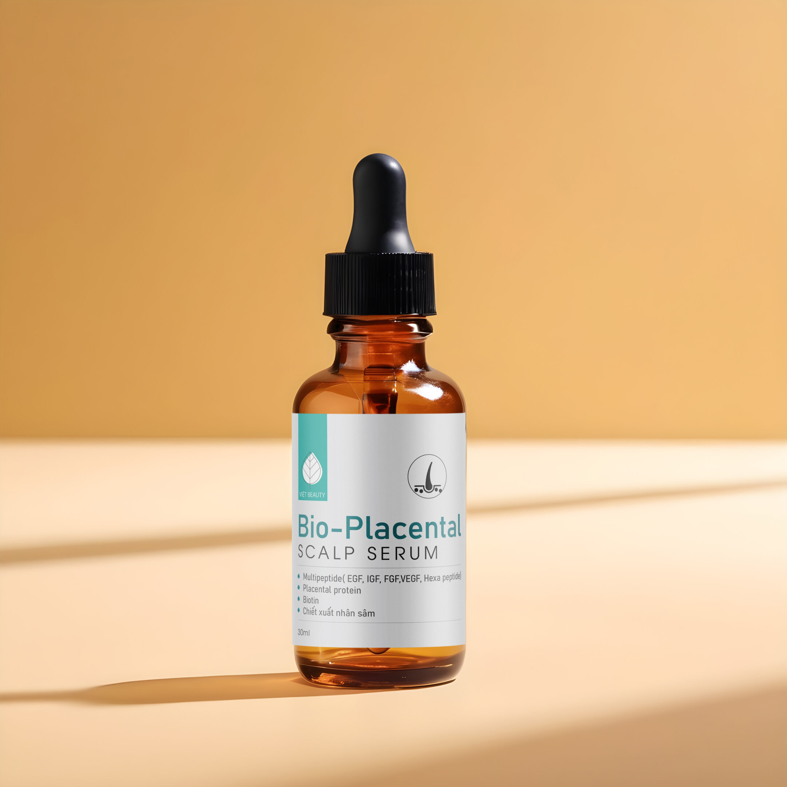 Tinh chất Bio-Placental Scalp Serum là sản phẩm nổi bật của Việt Beauty, hợp tác phát triển cùng Công ty Hanacos Việt Nam với công nghệ chuyển giao trực tiếp từ Hàn Quốc. Không chỉ được sản xuất theo tiêu chuẩn CGMP quốc tế, sản phẩm còn sử dụng nguyên liệu nhập khẩu từ Hàn Quốc, mang đến giải pháp đột phá trong chăm sóc da đầu và phục hồi nang tóc yếu.