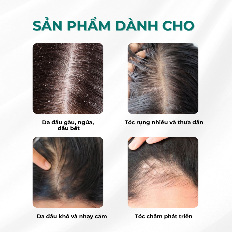 Peptides: Tăng cường sản sinh collagen và elastin ở da đầu, giúp nang tóc chắc khỏe hơn, hỗ trợ tóc mọc dày và dài.
