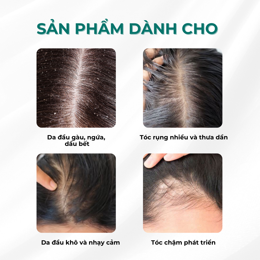 Serum dưỡng nang tóc và da đầu hỗ trợ kích tóc mọc nhanh, giảm tóc gãy rụng, da đầu bết, bóng dầu. Chân tóc sách và phồng hơn trong thời gian dài hơn so với chỉ gội đầu thông thường. Sử dụng sản phẩm trước có thể hỗ trợ và nâng cao hiệu quả các serum dưỡng tóc chuyên sâu khác Dùng trực tiếp lên da đầu và không cần xả hay gội lại. Công Dụng: - Hỗ trợ giảm rụng tóc, giảm tiết bã nhờn trên da đầu. Giảm mạnh tình trạng bết tóc - Kích thích mọc tóc, nuôi dưỡng nang tóc tóc chắc khỏe, phục hồi tóc hư tổn - Cung cấp các dưỡng chất giúp tóc dần trở nên mềm mại và óng mượt hơn